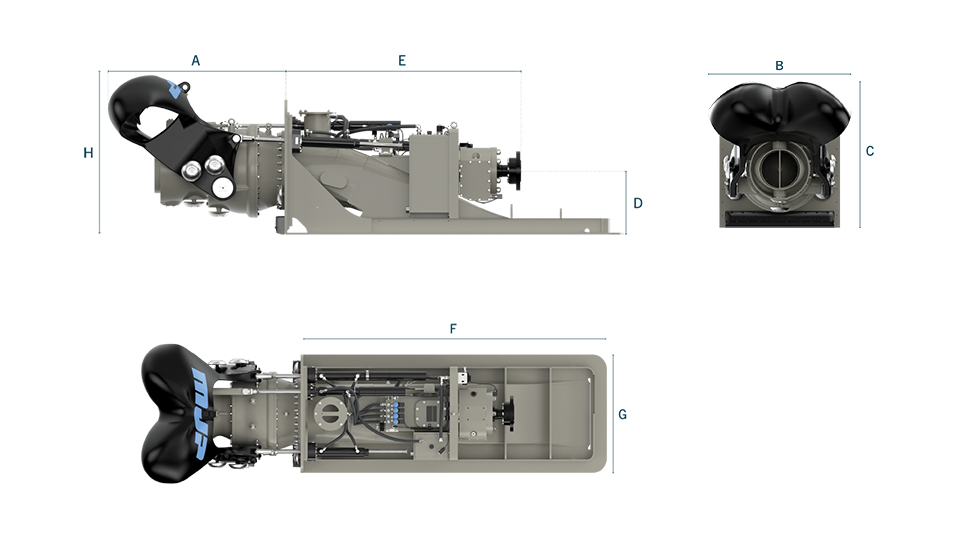 The cast aluminum bucket has been designed for decreased stopping distance and increased maneuverability. With its new narrow design, center-to-center installation placement is minimized and the mechanical tie bar synchronizes steering with the helm pump.