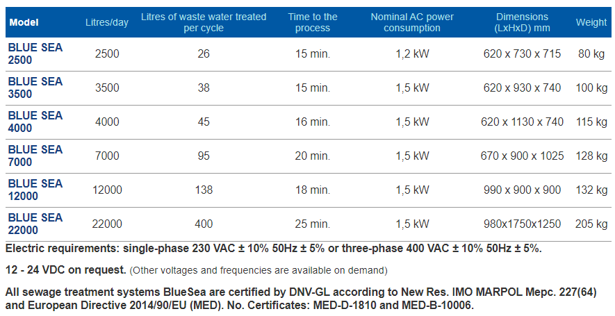 The BLUE SEA system is a new-generation waste water purifier capable of treating from 2500 to 22000 litres a day.