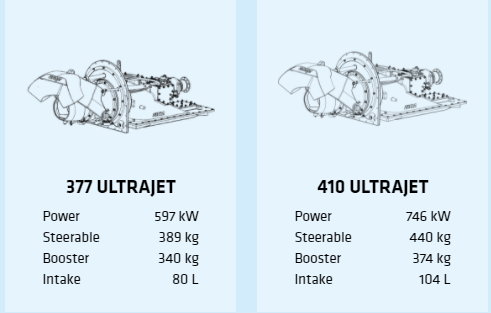 MJP Ultrajet marine jet drives (waterjet propulsion) feature high-efficiency single-stage axial-flow pump elements with a variety of intake housings and control options. A wide range of impellers match most marine diesel engines from 100 to 1342 kW (134 to 2172 bhp) per jet with the appropriate direct drive or reduction gear ratio. MJP Ultrajet propulsion systems are rated for the real-world operating conditions encountered by commercial and military boats.